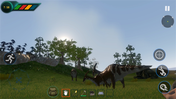4、游戏中的恐龙形象设计栩栩如生,逼真的图形让玩家仿佛置身于古代恐龙时代,玩家可以感受到恐龙们的威严和力量,也可以欣赏它们的优美身姿和独特外貌。游戏采用了最新的3D渲染技术,恐龙的每一片鳞片、每一根羽毛都清晰可见,配合真实的物理引擎,让恐龙的每一个动作都充满力量感和真实感。