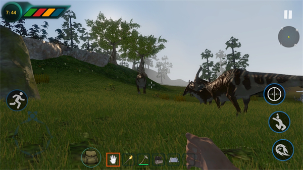 2、游戏中展现了各种逼真的恐龙形象,从霸王龙、棘龙等凶猛的食肉动物,到三角龙、甲龙等可爱的食草动物,还有飞行和游泳物种。游戏中的恐龙种类超过30种,涵盖了从陆地到天空再到水中的各种史前生物,每种恐龙都经过古生物学家的专业指导,确保其外形特征和行为模式都符合科学考证。