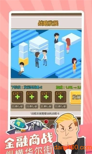 人才是企业发展的核心动力,游戏设计了丰富的人才招聘和培养系统。从基层员工到高管团队,每个岗位都需要精心挑选合适人选。特别设计的秘书系统让你可以招募各具特色的助理,他们不仅颜值出众,更拥有专业的商业素养,能为你提供关键决策建议。通过完善的培训体系和激励机制,打造高效能团队,让每个员工都能发挥最大价值。建立企业文化,提升员工忠诚度,共同开创商业帝国的黄金时代。