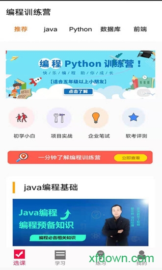 编程训练营是一款专为编程爱好者打造的全方位学习平台,无论你是零基础小白还是经验丰富的开发者,都能在这里找到适合自己的学习路径。平台汇聚了海量优质课程,涵盖从入门到精通的各个阶段,课程内容由行业权威专家精心打造,讲解深入浅出,学习方式灵活自由。通过实战项目、互动练习和专业指导,编程训练营致力于帮助每一位用户快速提升编程技能,轻松掌握前沿技术。无论你的目标是职业发展还是兴趣培养,这里都能为你提供强有力的支持。