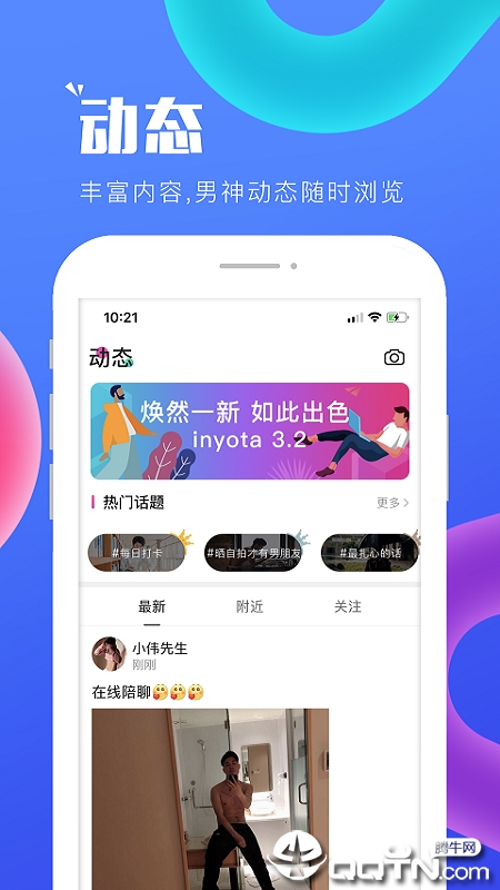 inyota拥有多项特色功能,为用户带来独特体验。动态板块实时更新,让你随时浏览男神们的精彩分享。群聊功能汇聚众多高颜值用户,在这里不仅能遇见好看的外表,更能发现有趣的灵魂。VIP会员服务提供尊贵特权,让用户体验与众不同的社交感受。平台还定期举办线上活动,为用户创造更多互动机会。