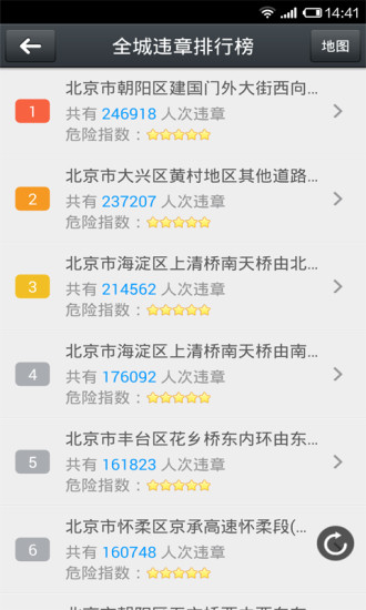 全城违章排行:基于大数据分析生成动态违章热力图,不仅标注常规高发路段,还能智能预测新出现的违章集中区域。系统会结合天气、时段等变量进行多维分析,当车辆接近这些区域时会触发语音提醒,真正做到防患于未然。每月更新的违章排行榜单还能帮助车主了解城市交通管理重点区域。