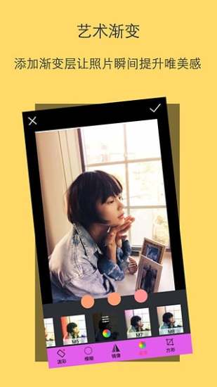 【艺术渐变】创新的渐变层编辑功能,支持多色渐变和透明度调节,为照片添加柔和的过渡效果,大幅提升画面的艺术表现力。