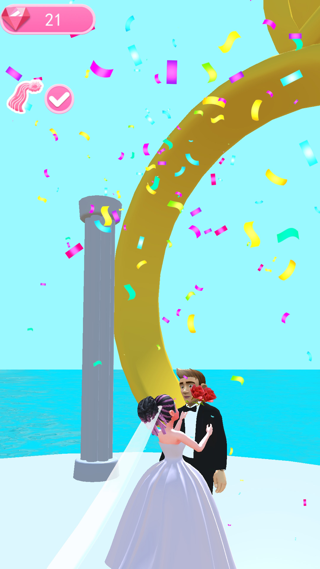 游戏的核心玩法是通过跑酷收集道具,解锁更多装扮选项。在奔跑过程中,你会遇到各种道具,如加速鞋、护盾、金币等,合理利用这些道具可以帮助你更快到达终点。此外,游戏还提供了丰富的婚纱和配饰,玩家可以根据自己的喜好自由搭配,打造独一无二的新娘造型。每完成一个关卡,你还能解锁新的场景和挑战,让游戏体验更加多样化。无论是收集道具还是装扮角色,都能让你感受到游戏的趣味性与可玩性。