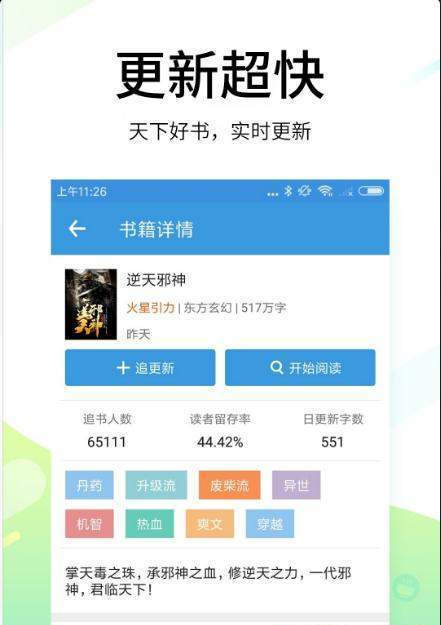 3、小说更新及时迅速,热门连载作品与网站同步更新,题材分类详细明确,满足各类读者的需求。