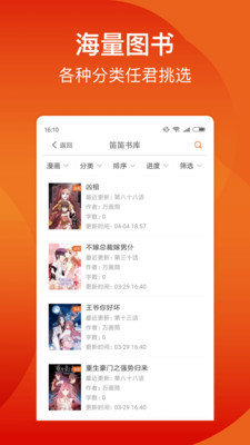 2、平台收录了数十万册各类题材小说,涵盖言情、玄幻、科幻、悬疑等主流类型,同时还有大量精品漫画作品,满足不同用户的阅读需求。