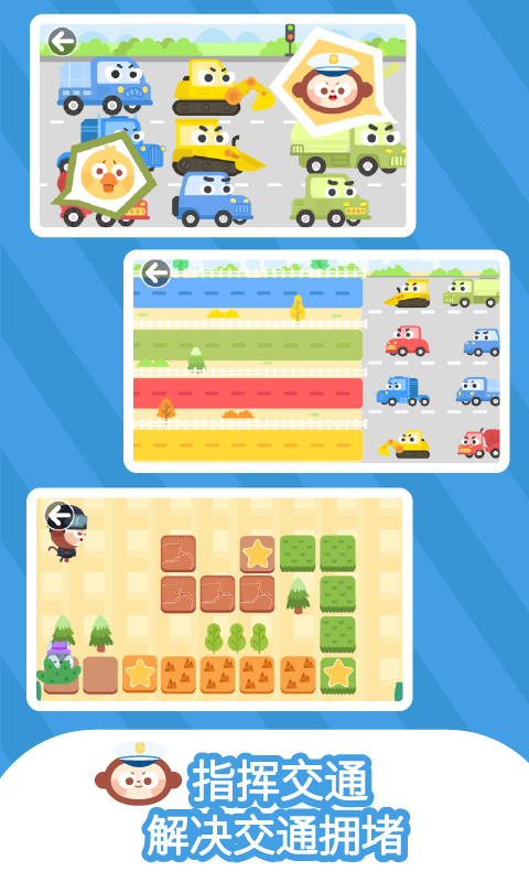 1、在《多多小警察》中,孩子们可以扮演交通警察,通过解开各种谜团和寻找线索来还原事件真相,锻炼逻辑推理能力。游戏设计了丰富的案件类型,从简单的物品丢失到复杂的抓小偷任务,让孩子在游戏中体验警察工作的方方面面。