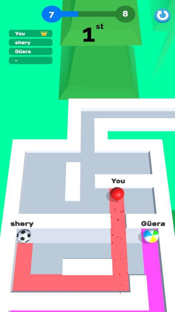 《球球滚动》是一款充满创意与竞技乐趣的休闲益智游戏。玩家将操控一颗色彩鲜明的小球,在奇幻的赛道上自由滚动,身后会留下与球体颜色相匹配的绚丽轨迹。这些轨迹不仅是您行进的证明,更是占领地盘的关键——其他玩家的轨迹无法覆盖您的专属印记。游戏以"领土争夺"为核心玩法,最终比拼谁能在有限时间内用轨迹覆盖最大面积的地图。独特的物理引擎让小球滚动手感真实流畅,而多变的赛道设计和实时对抗机制,更让每局游戏都充满变数与惊喜。无论是单人挑战还是多人竞技,都能带来截然不同的乐趣体验。