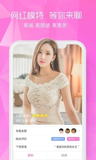 闲颜聊天App是一款专注于高品质社交的交友平台,汇聚了大量高颜值、高素质的单身网红模特,为用户打造真实可靠的社交环境。在这里,你可以通过一对一私密视频、智能匹配等功能,轻松结识志同道合的伙伴,寻找身体与灵魂的双重共鸣。平台采用严格的安全审查机制,确保用户资料真实可信,杜绝虚假信息和不良行为。丰富的社交圈子和便捷的聊天系统,让你随时随地与心仪对象畅快沟通。无论是寻找恋爱对象还是拓展人脉,闲颜聊天都能满足你的需求,快来加入这个充满活力的社交圈吧!