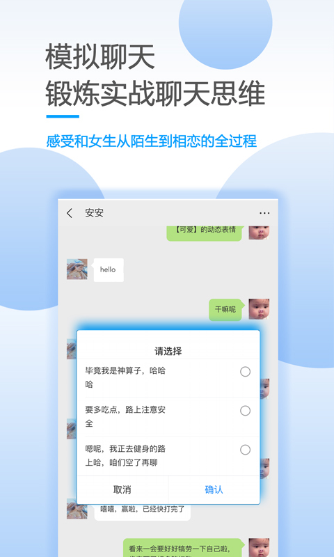 还在为和女生聊天时手足无措而烦恼吗?聊天达人正是为解决这些困扰而设计。软件针对男性用户在异性交往中常见的沟通障碍,提供了系统化的解决方案。从破冰话题到深入交流,从幽默应对到情感表达,全方位覆盖各种社交场景。特别值得一提的是,软件内置的情绪识别功能可以帮助用户准确把握对方心理状态,避免踩雷。无论是性格内向的新手,还是想要提升情商的进阶用户,都能在这里找到适合自己的学习路径。