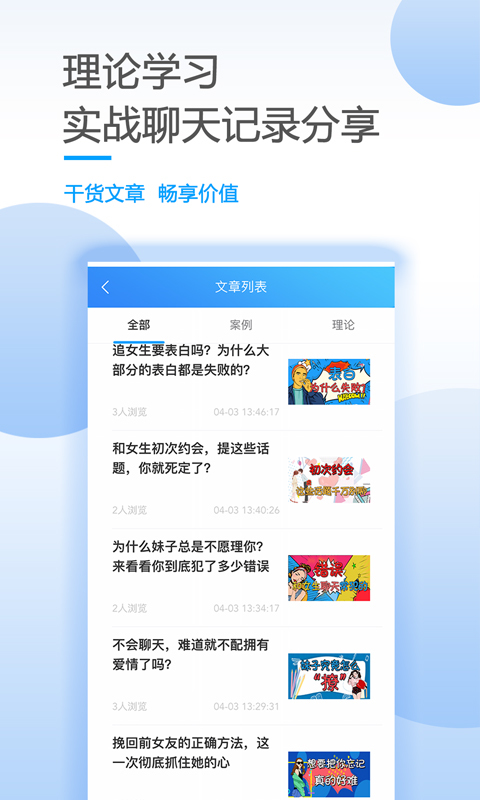 聊天达人是一款专为社交互动打造的智能助手应用,旨在帮助用户提升沟通技巧,轻松应对各种聊天场景。无论是初次相识的尴尬,还是日常交流的冷场,这款软件都能提供丰富的解决方案。通过科学的话术库和情景模拟训练,用户可以快速掌握聊天节奏,学会如何自然地开启话题、延续对话以及化解尴尬。特别适合在约会、社交场合中想要展现魅力的用户群体。软件界面简洁友好,操作便捷,让每个人都能成为聊天高手。