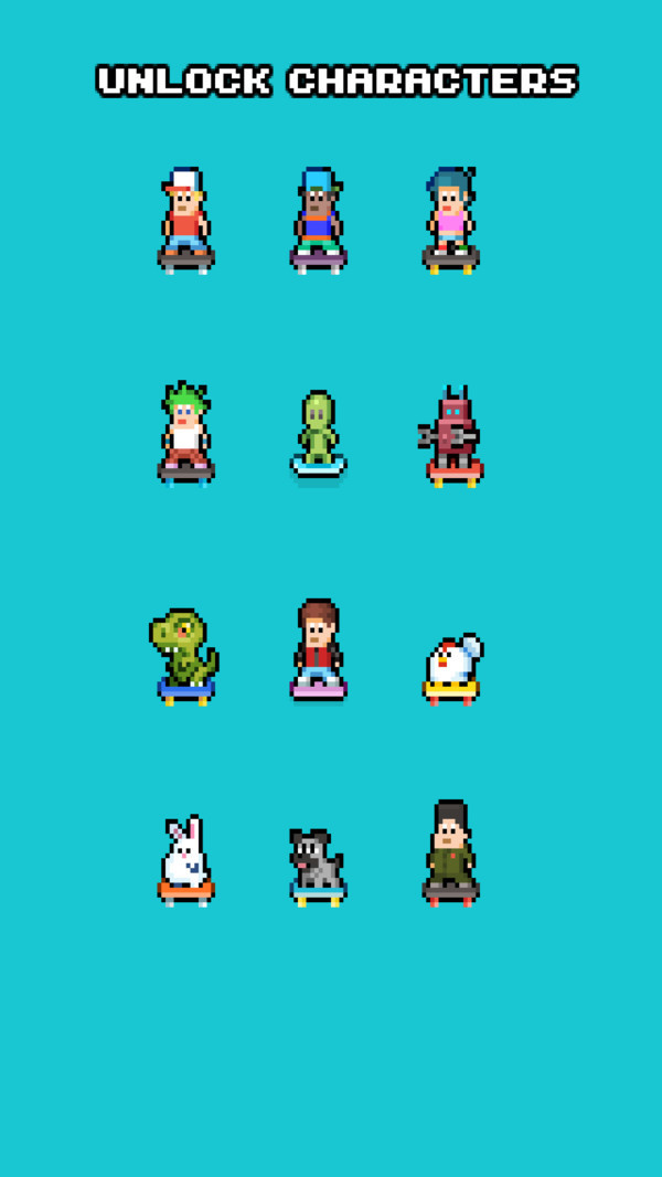 在游戏中,你可以利用公园的长椅、栏杆等障碍物完成各种花式技巧,每个动作都能获得相应的分数奖励。游戏收录了数十个风格各异的可爱角色,从经典造型到特殊主题应有尽有,满足不同玩家的收藏喜好。全球排行榜系统让你可以与世界各地的玩家一较高下,看看谁的溜冰技术更胜一筹。复古像素风格的画面设计不仅充满怀旧感,鲜艳的色彩搭配也为游戏增添了更多活力,让整个溜冰体验更加生动有趣。