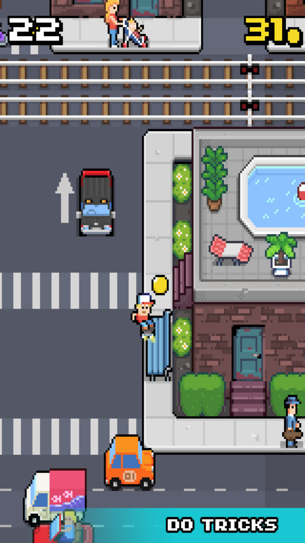 这款游戏最吸引人的地方在于它提供了完全自由的溜冰体验,你可以骑着像素风格的滑板在城市街道上尽情表演各种特技动作。无论是简单的ollie还是复杂的翻转组合,都能通过简单的操作实现。游戏还支持多人竞技模式,你可以邀请好友一起比拼,看看谁能成为真正的溜冰高手。精心设计的街道场景中隐藏着各种机关和障碍,需要玩家运用技巧灵活应对。完成特定挑战还能解锁稀有角色和特殊道具,为游戏增添了更多收集乐趣。