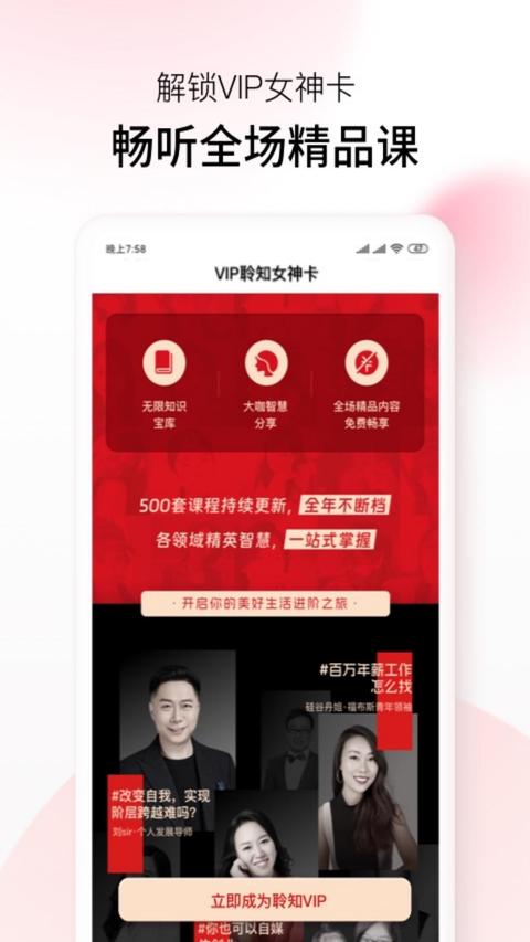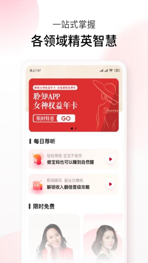 聆知APP特别适合忙碌的现代人,每天只需30分钟,就能系统学习到经过专家精心打磨的专业知识。平台用户群体涵盖中小微企业主、创业者、白领、企业中高层等精英人士,课程内容聚焦于提升自我素养、产品思维、前沿视野、家庭教育、互联网科技等实用领域。除了学习功能外,平台还为用户提供内容创作机会,无论你是行业资深人士还是初入职场的新人,只要拥有优质内容,都可以在这里建立个人频道。聆知强大的推荐算法会精准匹配目标用户,并通过与第三方平台的合作,为优质内容创作者带来百万级曝光机会,助力每一位知识分享者成长为行业意见领袖。