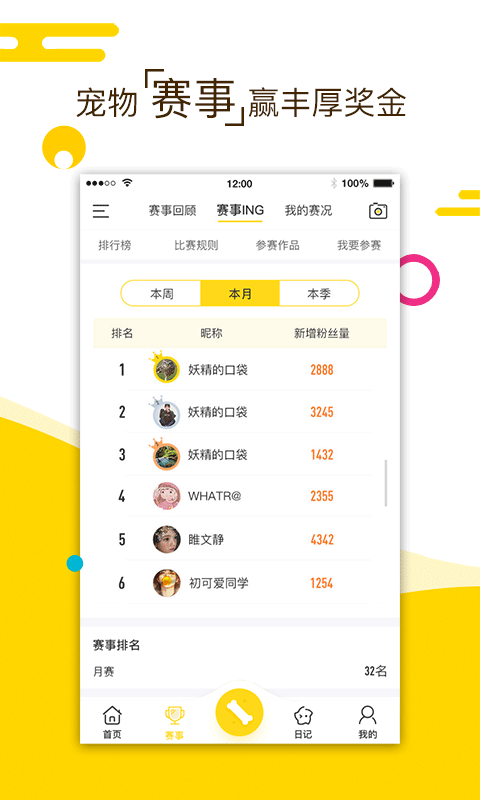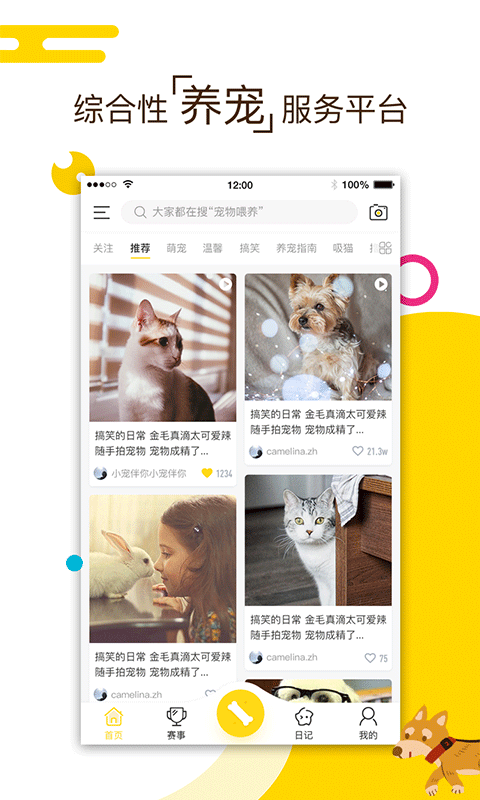 宠物赛事:平台定期举办各类线上线下赛事,包括萌宠选美、技能比拼等,参与即有奖,冠军更能获得丰厚大礼;宠物资讯:汇集国内外最新养宠资讯,涵盖健康管理、行为训练、产品测评等内容,助你成为更专业的铲屎官;宠物社区:拥有百万活跃用户的互动平台,你可以分享养宠日常、交流经验,还能参与话题讨论,让你的爱宠成为社区明星。