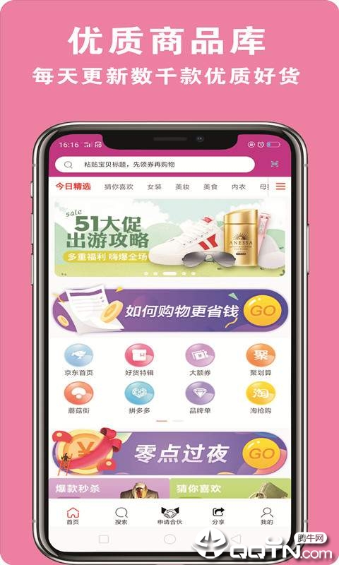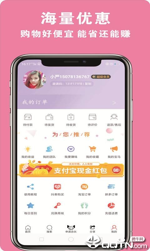 用户只需点击官方下载链接即可获取最新版APP安装包,安装过程简单快捷。首次打开软件后,系统会引导完成基础设置和账号注册。主界面分类清晰,可通过搜索栏快速查找目标商品,或在活动专区浏览限时特惠。选定商品后,点击"领券购买"自动跳转合作平台,下单后佣金将实时计入账户。分享商品链接给好友,当他们成功购买后您还能获得额外奖励。