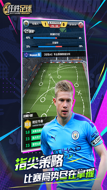 游戏内置包含4-3-3攻守平衡、5-4-1铁桶阵等36套基础阵型,支持自定义微调每个球员的跑位倾向。比赛过程中可随时暂停进行多达20项战术微调,包括压迫强度、造越位频率等专业参数。独特的"数据面板"会实时显示双方控球率、传球成功率等12项关键数据。