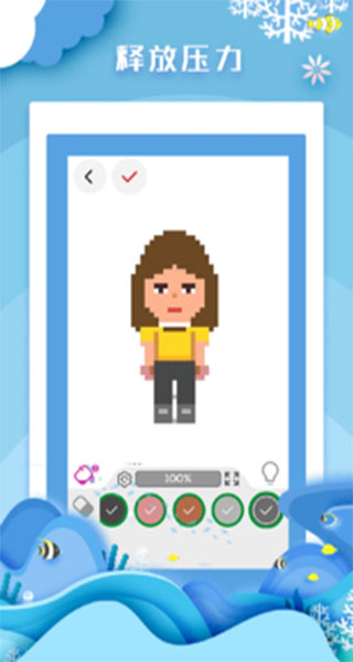 游戏操作极其简单直观,只需轻按屏幕就能完成填色,双指开合即可自由缩放画面。所有完成的作品都会自动保存在"我的作品"中,方便玩家随时回顾欣赏。这款游戏不仅能让你在填色过程中放松心情,还能有效缓解压力,是打发碎片时间的理想选择。宁静的游戏氛围配合舒缓的音乐,让你在繁忙生活中找到片刻的宁静与惬意。