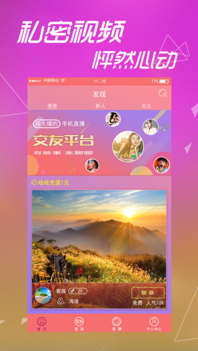 水聊拥有庞大的用户群体,每天都有数以万计的用户在线等待与你视频连线。无论你是想倾诉烦恼、分享快乐,还是单纯想找人聊天解闷,这里都能满足你的需求。平台支持美颜滤镜和虚拟背景功能,让你在镜头前始终保持最佳状态。独特的智能匹配系统能根据你的性格特点为你推荐最合适的聊天对象,让每次视频通话都充满惊喜。