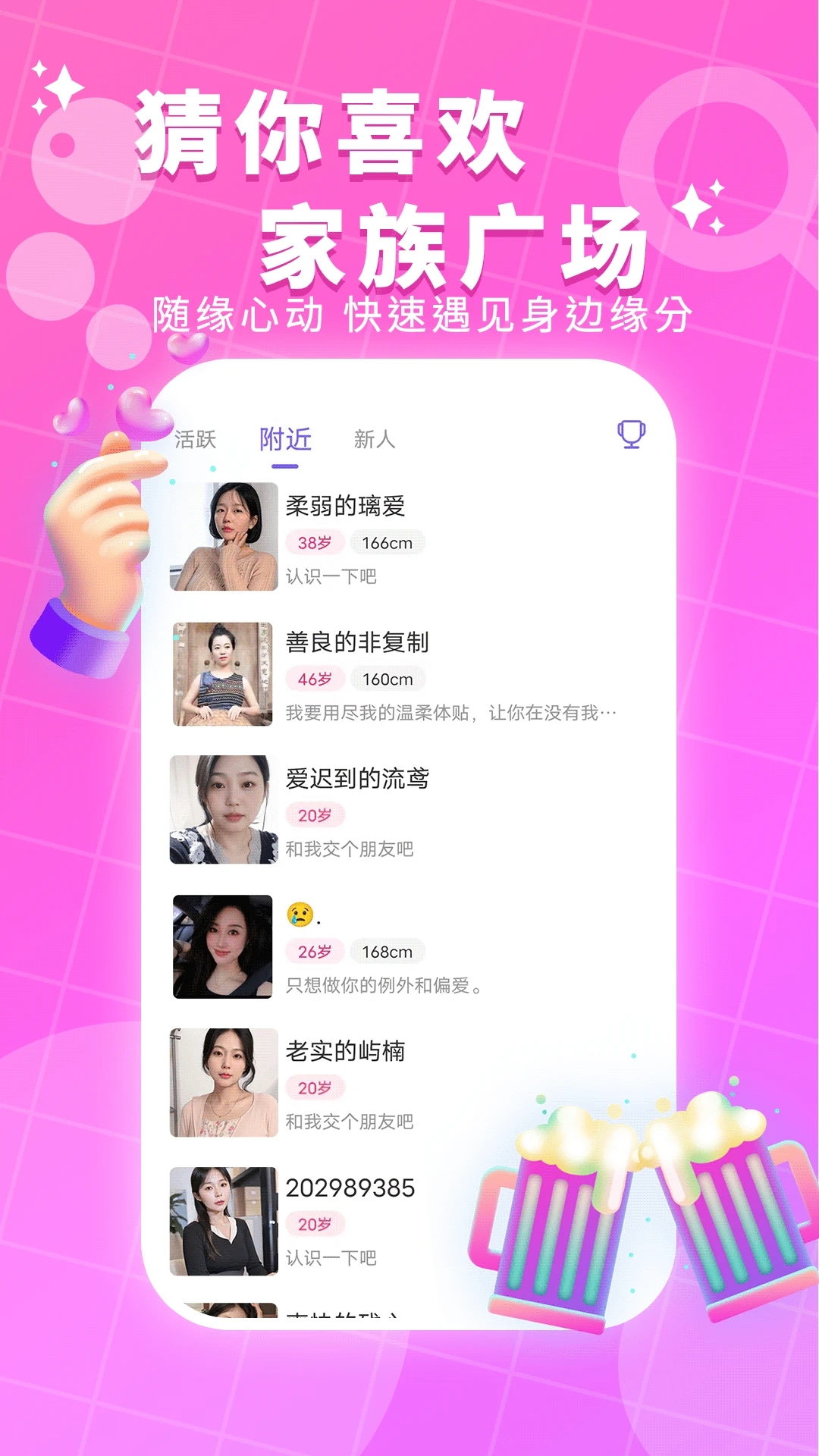 基于LBS定位技术,智能推荐周边优质用户,打破地域限制,让您轻松结识同城有缘人。系统会根据您的社交偏好进行个性化推荐,确保每次匹配都更符合您的期待。无论是寻找知心好友还是浪漫伴侣,这里都能满足您的需求。