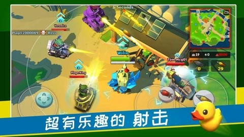 游戏拥有丰富多样的战斗系统,玩家可以通过解锁和升级获得数十种性能各异的坦克。每种坦克都配备独特的特殊技能,从远程狙击到近战爆发应有尽有。游戏采用实时在线PvP模式,支持20人同场竞技,每局比赛都像一场小型战争。玩家可以自由搭配宠物与坦克的组合,不同组合会产生截然不同的战斗风格。游戏还设有完善的成长系统,通过战斗积累经验可以提升坦克性能,解锁更强大的武器装备。排行榜系统让顶尖玩家可以一较高下,争夺最强王者的荣誉。