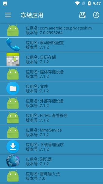 3、在应用管理页面长按目标应用,可调出详细操作菜单,除基础冻结功能外,还支持查看应用详情、清除数据等操作。冻结状态下的应用将完全停止后台活动。