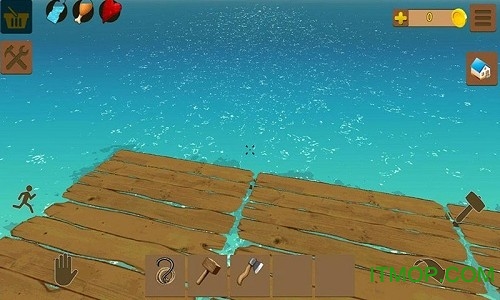 在海洋中间真正的木筏:物理模拟的绳索系统可以真实呈现捆绑物品的松紧程度。当木筏超过承重极限时,木板会逐渐开裂渗水,必须及时修补。