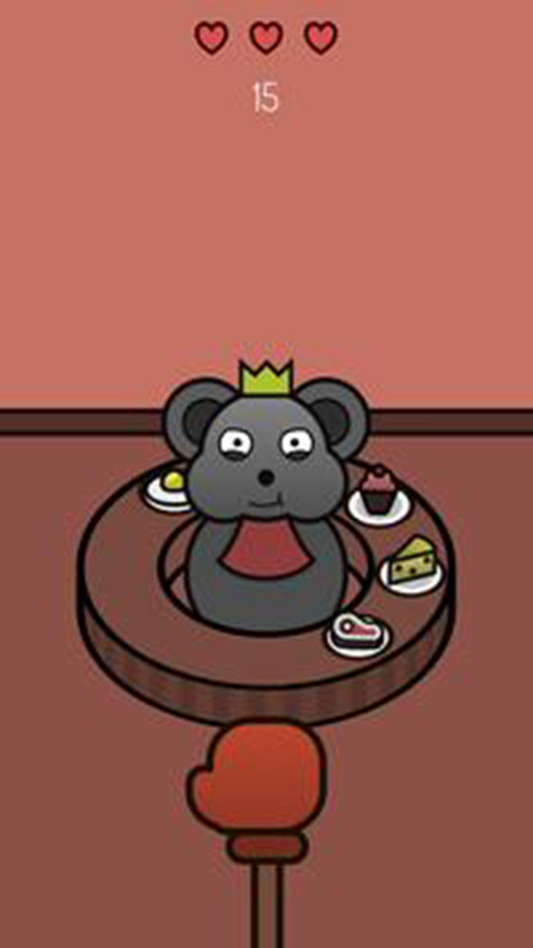 在《宴请国王》中,玩家需要面对一个不断旋转的转盘,上面坐着我们尊贵的老鼠国王。作为国王的贴身侍卫,你必须时刻保持专注,通过触屏操作将随机出现的食物准确投入国王口中。游戏难度会随时间逐步提升,转盘转速越来越快,食物种类也更加丰富。每位玩家初始拥有三颗小红心,每次喂错食物就会失去一颗。这种紧张刺激的玩法设计让游戏充满挑战性,既能锻炼反应能力,又能带来持续的新鲜感,是休闲娱乐的完美选择。