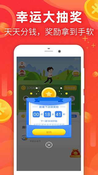5、科学的步数管理系统帮助培养健康习惯,每日一万步目标提醒、周报分析等功能,让用户清晰掌握运动数据,收获健康与财富。