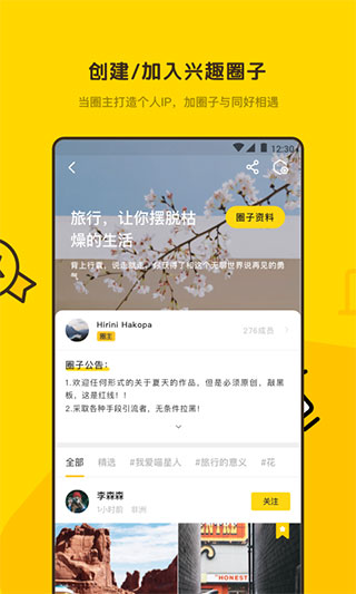 "圈子"功能让用户能够基于共同兴趣建立社交连接。无论是摄影、绘画还是短视频创作,都能找到志同道合的伙伴,在专业社群中获得成长和启发。