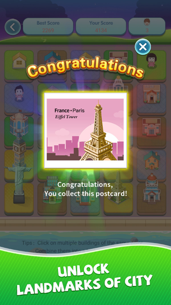 3、成为更高级的建筑,不断的进行合并以后就能变成各种世界地标。随着游戏的深入,你将解锁更多高级建筑,每个阶段都能带来新的惊喜和挑战,让你的建筑王国不断壮大。