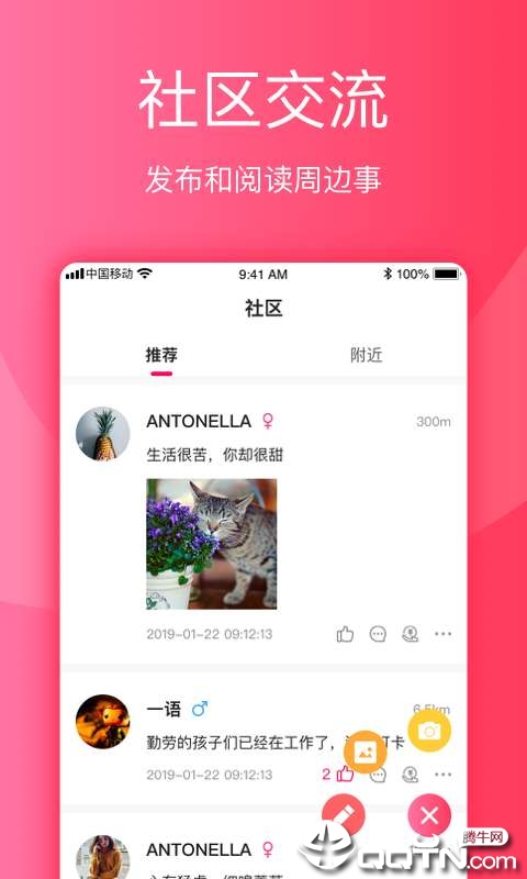 发布和阅读周边事。社区板块是一个充满活力的互动空间,用户可以分享生活点滴、参与热门话题讨论,或是发起线下聚会。平台会基于位置信息推送附近用户的活动动态,让您随时掌握周边社交机会。