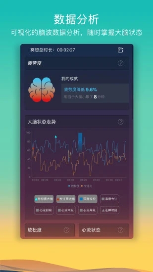 在现代快节奏生活中,压力与焦虑已成为困扰都市人的普遍问题。「8分钟冥想」应用创新性地融合了脑电波监测技术与冥想训练,为用户提供专业级的减压解决方案。应用采用极简设计风格,操作界面直观友好,即使是零基础用户也能快速上手。课程体系设计科学合理,从5分钟入门练习到30分钟深度冥想,循序渐进地帮助用户建立冥想习惯。特别值得一提的是,配合brainlink专业硬件使用时,能精准捕捉脑电波变化,生成可视化训练报告,让用户清晰了解每次练习的效果提升。这种数据驱动的训练方式,配合名师语音引导,让冥想不再只是主观感受,而成为可量化、可追踪的科学实践。