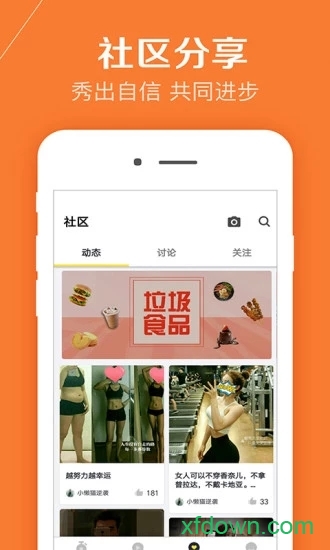 社区分享:秀出自信,共同进步;可以发布训练视频获得专业点评,与志同道合的伙伴互相激励。