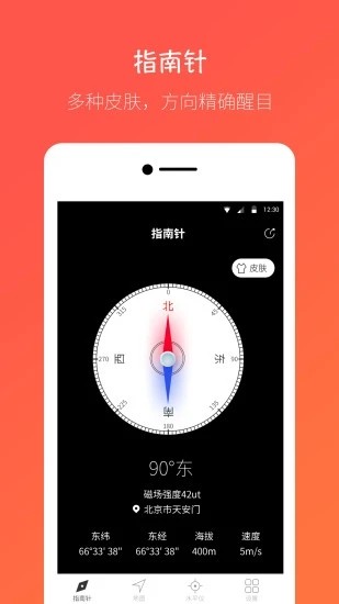 桔子指南针2022最新版是一款专业级的方位识别工具,它不仅具备传统指南针的基础功能,还能提供丰富的环境数据监测服务。这款轻量级应用通过手机内置传感器,可实时显示精确的方位角度、地理坐标和磁场强度,并支持海拔高度测算。其创新的多皮肤切换系统让实用工具也能展现个性化风格,无论是户外探险时的方向定位,还是日常生活中的位置查询,都能提供可靠支持。特别优化的低功耗设计确保长时间使用不耗电,配合直观的地图导航和水平仪功能,真正实现了多功能方位工具的智能整合。