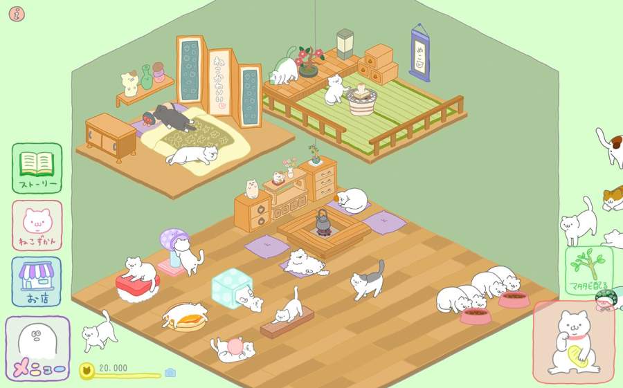 ・轻松休闲的玩法搭配治愈系的画风,让玩家在照顾猫咪的过程中获得放松和愉悦。