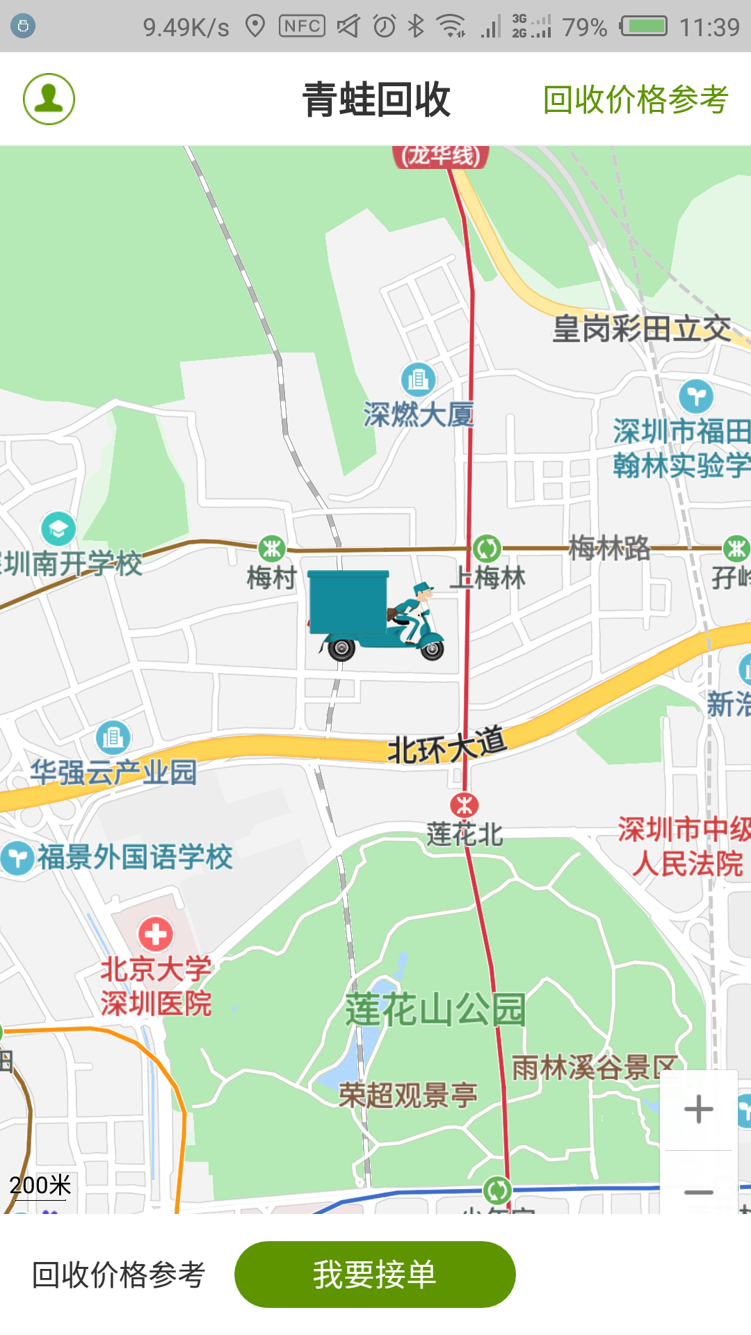 2.回收员只需打开手机APP,开启接单模式后,系统会根据定位智能推送附近订单,无需再挨家挨户走访,大大提高了工作效率和收入水平。