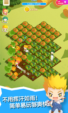 2、玩家们还可以自己开坑荒地,多一块荒地就能多一份收入。随着等级提升,您将解锁开垦系统,用金币或钻石将杂草丛生的荒地变成沃土。每块新开垦的土地都能带来15%的额外收益加成,更支持自由规划田垄走向,打造属于您的个性化农场布局。