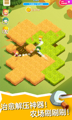 2、勤劳是发家致富的基本,只有用那很大的镰刀就能获取相应的金币。游戏创新性地加入了"勤劳值"系统,连续登录或完成特定任务可积累勤劳值,当数值满格时使用金色镰刀收割,可获得双倍收益。这个机制既鼓励玩家保持游戏习惯,又增加了收获时的爽快感。