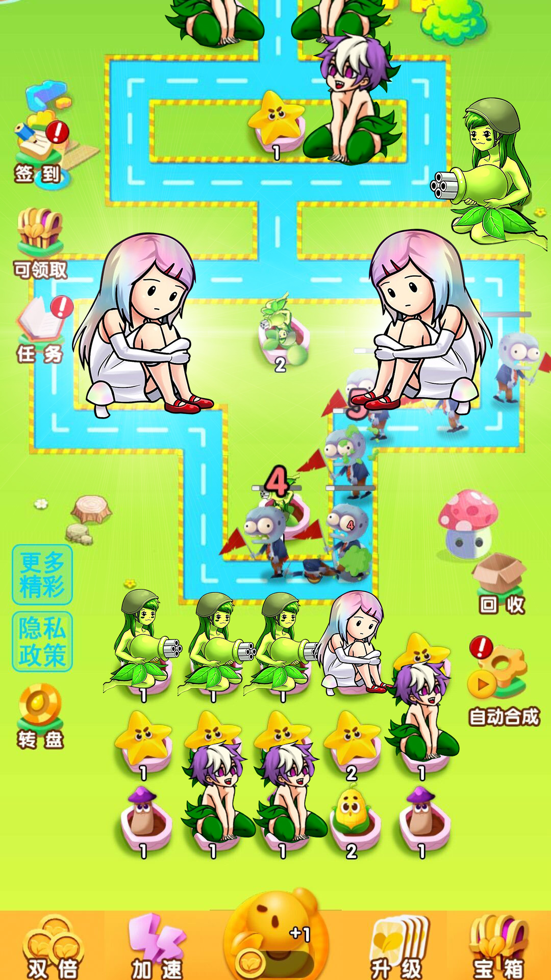 游戏融合了塔防策略、角色养成和卡牌收集三大核心玩法。在塔防方面,玩家需要根据地形特点和敌人类型合理部署植物娘阵容,利用她们的特殊技能来阻挡僵尸进攻。游戏包含五种不同的战斗模式,包括经典模式、无尽模式、生存挑战等,每种模式都有独特的规则和奖励机制。环境因素如昼夜交替、天气变化和特殊地形都会影响战斗策略。玩家可以收集49种不同特性的植物娘,通过升级和装备强化来提升她们的战斗力。战斗中可以随时切换植物娘的位置和技能释放时机,灵活应对各种突发状况。