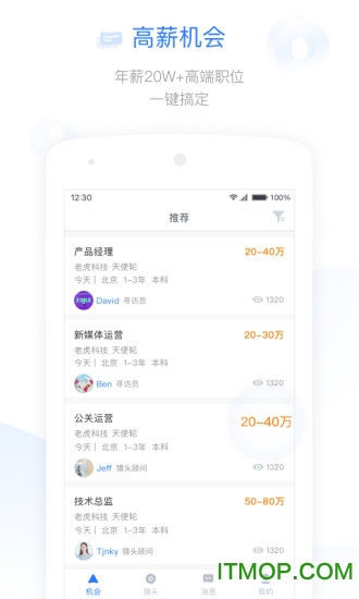 专注20万以上年薪的高端职位,涵盖互联网各细分领域。平台定期更新优质岗位信息,通过智能算法精准匹配用户需求。用户可以设置薪资期望和职位偏好,系统将自动推送符合条件的高薪机会。