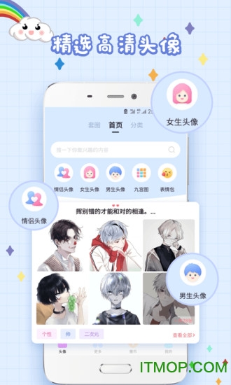 精选头像大全app是一款专为追求个性表达的年轻用户设计的创意头像应用。这款软件汇聚了数万张高清无水印头像资源,涵盖情侣头像、九宫格拼图、动漫角色、明星写真等多元分类,每日更新最新潮流素材。应用采用智能推荐算法,能根据用户偏好精准推送匹配风格的头像,同时提供独家DIY编辑功能,让用户轻松打造专属个性头像。无论是社交平台换装需求,还是单纯欣赏精美图片,这款体积小巧、操作流畅的应用都能带来惊喜体验。