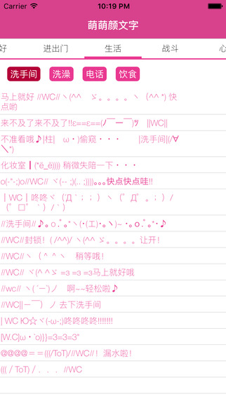 5.分类清晰的情绪标签,帮助用户快速找到适合当前心情的颜文字,让情感表达更加准确生动
