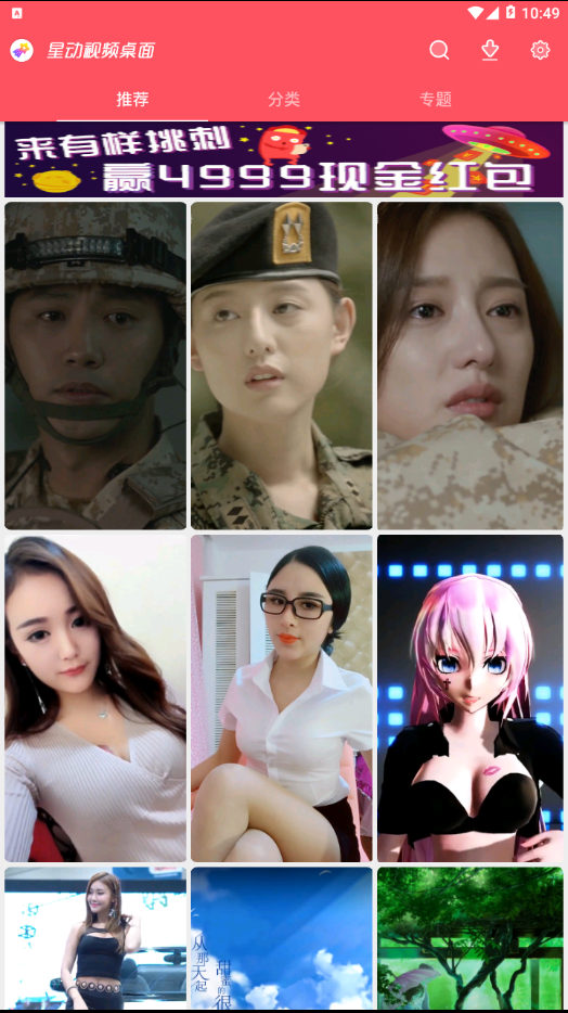 【海量壁纸】星动视频桌面拥有超过10万+高清视频资源,涵盖游戏专区、热门影视、动物萌宠、风景名胜等20余个分类。特别打造的明星专区收录当红艺人最新写真,歌曲舞蹈区包含各大音乐平台热门MV,个性酷图区则汇聚全球顶尖设计师作品,总有一款能打动你的心。