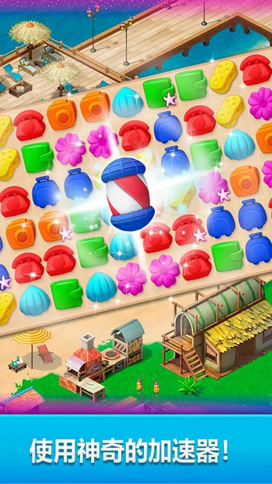 游戏采用清新明快的画风设计,搭配浪漫唯美的海滩背景,让你仿佛置身于真实的度假胜地;全新的游戏世界观营造出完美的度假氛围,多种玩法模式带来丰富的游戏体验;通过不断升级角色能力,解锁更多精彩内容,获得令人惊喜的丰厚奖励。无论是消除爱好者,还是模拟经营玩家,都能在这款游戏中找到属于自己的乐趣。