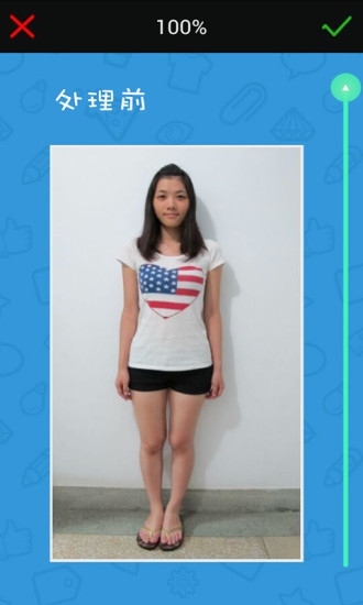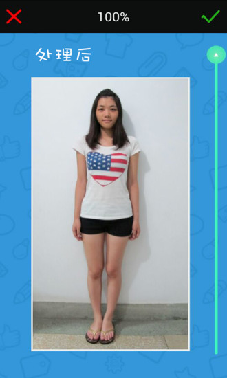 短腿救星,长腿欧巴不是梦!这款应用采用先进的图像处理技术,能够在不损失画质的情况下,轻松调整腿部比例,让你的身材看起来更加完美。操作简单直观,提供两种模式供你选择,无论是自然拉伸还是夸张效果,都能满足你的需求。此外,软件还内置了多种炫丽特效和滤镜,让你的照片更具艺术感。只需标记出脚踝、腰和肩膀的位置,通过滑条调整即可实现理想的身材比例。从此告别踮脚拍照的尴尬,让你的每一张照片都充满自信与魅力!