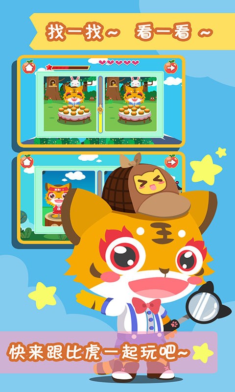 1.精美的动画场景为宝宝提供,让宝宝更爱找茬游戏。每个场景都配有生动的开场动画和胜利特效,激发孩子的游戏兴趣。
