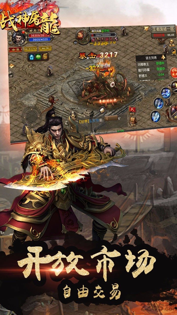 2、远古BOSS挑战系统,支持万人同屏争夺稀有怪物。屠龙裁决、夺宝奇兵等特色玩法,让你体验最刺激的野外争夺战。谁将成为最终的胜利者?一切由实力决定!