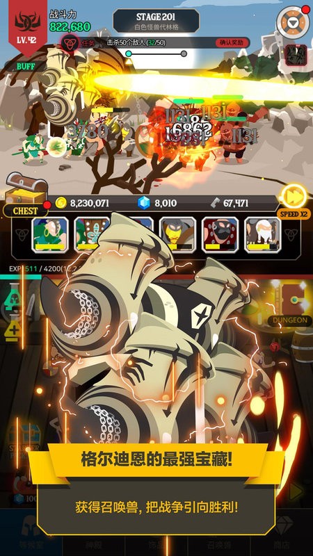 3.通过史诗级战役打败你的敌人,占领更多的领土,解锁特殊建筑和增益效果,让你的发展更快,使你的英雄团队更加强大。