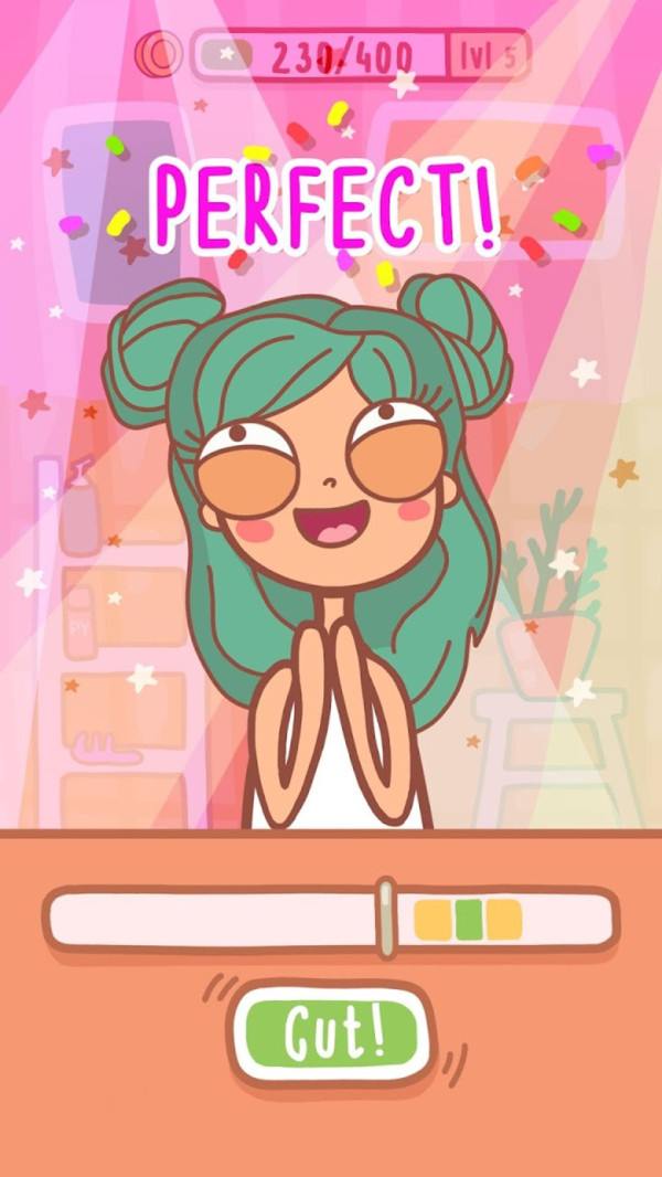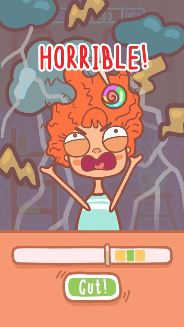 在《头发沙龙故事》中,剪发不仅是一种娱乐,更能锻炼你的反应能力和专注力。游戏采用精准的滑动操作机制,需要在特定位置停下剪刀才能完成完美修剪。绿色区域代表完美剪裁,黄色区域表示尚可接受。随着游戏难度提升,顾客的要求会越来越复杂,一个不小心就可能惹怒顾客。看似简单的玩法实则充满挑战,需要你全神贯注才能成为真正的美发大师!